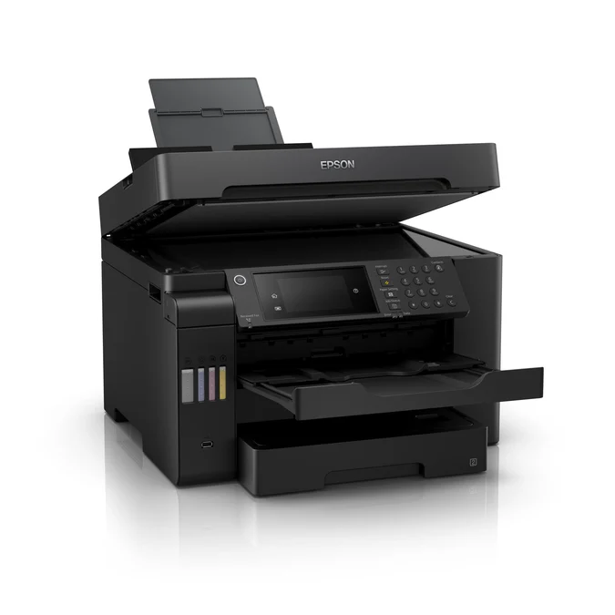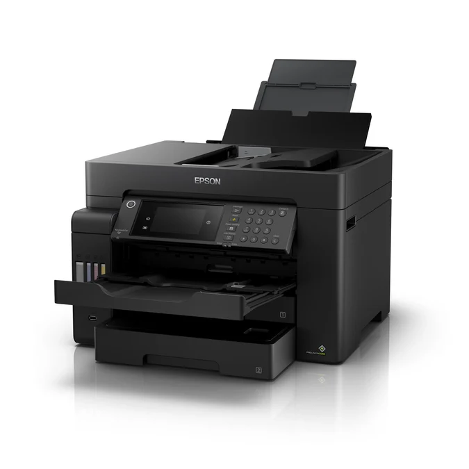 Feature-rich A3 EcoTank The L15150 is designed for A3 tasks with A3+ print, scan, copy and fax. It's easy to navigate the extensive range of features via the 10.9cm LCD touchscreen and hard keys. Keep on saving Save every time you print with this EcoTank that delivers an incredibly low cost per page. Unlike other printers, EcoTank features large ink tanks that you fill with low-cost ink bottles. End interruptions Minimising refills, this EcoTank can print thousands of pages before needing more ink, while the two A3 paper trays offer a capacity of 500-sheets. Free yourself from manual page loading with a generous 50-sheet rear feed and A3 ADF. Print from almost anywhere With Wi-Fi and Wi-Fi Direct, you can send documents to print from smart devices using the Epson iPrint and Smart Panel apps*. Also features Ethernet. Easy to use and reliable Filling the large front ink tanks is simple with the resealable, intuitive and drip-free ink bottles.The heat-free PrecisionCore printhead is renowned for its speed, quality, reliability and efficiency, and will last the lifetime of the printer. Specifications: Printing Method: PrecisionCore™ Print Head Nozzle Configuration: 800 Nozzles Black, 256 Nozzles per Color Minimum Droplet Size: 3,8 pl Ink Technology: DURABrite™ ET Printing Resolution: 4.800 x 2.400 DPI Category: Home Office, Office Desktop All-in-One Functions: Print, Scan, Copy, Fax Print Printing Speed ISO/IEC 24734: 25 pages/min Monochrome, 12 pages/min Colour Printing Speed: 32 pages/min Monochrome (plain paper 75 g/m²), 22 pages/min Colour (plain paper 75 g/m²) Duplex Printing Speed ISO/IEC 24734: 16 A4 Pages/min Monochrome, 9 A4 Pages/min Colour First Page Out: Monochrome 5,5 Seconds, Colour 8,5 Seconds Colours: Black [Pigment], Cyan [Pigment], Yellow [Pigment], Magenta [Pigment] Scan Double-sided scanning: Yes Single-sided scan speed (A4 black): 26 ipm with ADF scan 5 sec. with flatbed scan Doubled-sided scan speed (A4 black): 11,5 ipm with ADF scan Single-sided scan speed (A4 colour): 9 ipm with ADF scan 10 sec. with flatbed scan Doubled-sided scan speed (A4 colour): 6 ipm with ADF scan Optical Resolution: 2.400 DPI x 1.200 DPI (Horizontal x Vertical) Output formats: BMP, JPEG, TIFF, multi-TIFF, PDF, PNG Scanner type: Contact image sensor (CIS) Fax Type of fax: Walk-up black and white and colour fax capability Fax Transmission Speed: Up to 33.6kbps / Approx. 3 sec/page Error correction mode: CCITU/ITU Group3 fax with Error Correction Mode Fax speed dials (max): 200 names and numbers Page memory: Up to 550 pages/ 6MB (ITU-T No. 1 chart) Fax Functions: PC Fax, Fax to E-mail, Memory Reception, Auto Redial, Fax to Folder, Address Book, Broadcast Fax, Fax Preview, Polling Reception