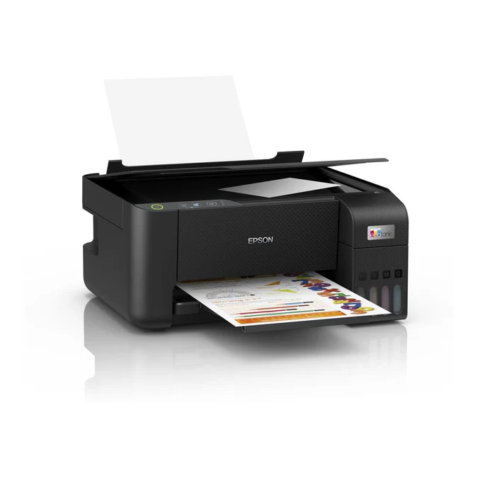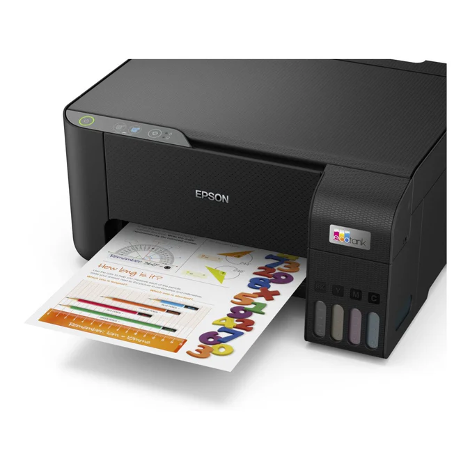 Say goodbye to expensive cartridges EcoTank provides hassle-free low-cost home printing - the ultra-high capacity ink tanks allow mess-free refills and the key-lock bottles are designed so only the correct colour can be inserted. Keep on saving This economical printer saves you up to 90% on printing costs and comes with up to 3 years' worth of ink included in the box. The included set of ink bottles delivers up to 8,100 pages in black and 6,500 in colour. Packed with features Featuring print-scan-copy functionality, borderless photo printing (up to 10x15cm), you can speed through a variety of tasks with ease. Heat-Free Technology With Epson Micro Piezo Heat-Free Technology you can enjoy fast and high-quality printing. The reliable and long lasting printhead also comes pre-installed so setting up your printer is hassle-free. Features: Multifunction printer Print, copy & scan Ultra-low-cost printing Save up to 90% on printing costs Up to 3 years of ink in the box Includes 8,100 pages in black and 6,500 in colour Hassle-free ink tank system Enjoy mess-free refills with key-lock bottles and front-facing tanks Specifications: Printing Method: Epson Micro Piezo™ print head Nozzle Configuration: 180 Nozzles Black, 59 Nozzles per Color Minimum Droplet Size: 3 pl, With Variable-Sized Droplet Technology Ink Technology: Dye Ink Printing Resolution: 5.760 x 1.440 DPI Category: Home, Home Office All-in-One Functions: Print, Scan, Copy Number of colours: 4 colour Printing Speed ISO/IEC 24734: 10 pages/min Monochrome, 5 pages/min Colour, 69 Seconds per 10 x 15 cm photo Printing Speed: 15 pages/min Colour (plain paper 75 g/m²), 33 pages/min Monochrome (plain paper 75 g/m²), 27 Seconds per 10 x 15 cm photo (Epson Premium Glossy Photo Paper) Scan: Single-sided scan speed (A4 black): 200 DPI; , 11 sec. with flatbed scan Single-sided scan speed (A4 colour): 200 DPI; , 32 sec. with flatbed scan Output formats: BMP, JPEG, PICT, TIFF, multi-TIFF, PDF, PNG Scanner type: Contact image sensor (CIS) Optical Resolution: 600 DPI x 1.200 DPI (Horizontal x Vertical) Paper / Media Handling: Number of paper trays: 1 Paper Formats: C6 (Envelope), B5, A6 (10.5x14.8 cm), A5 (14.8x21.0 cm), A4 (21.0x29.7 cm), Legal, User defined, 13 x 18 cm, 10 x 15 cm, Letter, No. 10 (Envelope), DL (Envelope), 16:9 Duplex: Manual Output Tray Capacity: 30 Sheets Paper Tray Capacity: 100 Sheets Standard, 100 Sheets Maximum, 20 Photo Sheets Compatible Paper Weight: 64 g/m² - 300 g/m² Media Handling: Borderless Print (up to 10 x 15cm)