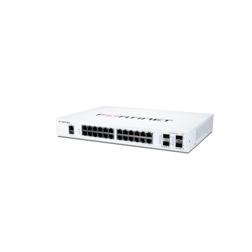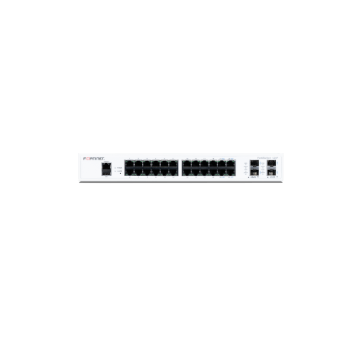 FS-124F | Fortinet FortiSwitch-124F The FortiSwitch™ Secure Access Family delivers outstanding security, performance, and manageability. Secure, simple, and scalable, FortiSwitch is the right choice for threat conscious businesses of all sizes. Features FortiSwitch-124F is a performance/price competitive switch with 24x GE port + 4x SFP+ port + 1x RJ45 console. Fanless design. Highlights Designed for installations from desktops to wiring closets Ideal for SD-Branch deployments Centralized security and access management from FortiGate interfaces with FortiLink Optimal for converged network environments; enabling voice, data, and wireless traffic to be delivered across a single network Supports non-FortiLink deployments through onboard GUI, API, or command line configuration Up to 48 ports in a compact 1 RU form factor Stackable up to 300 switches per FortiGate, depending on model Supports Wire-speed switching and Store and Forward forwarding mode