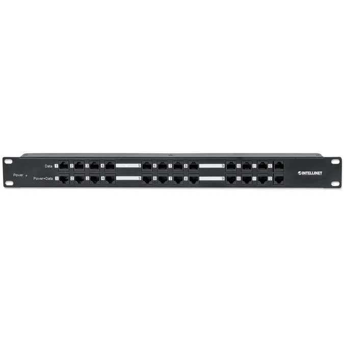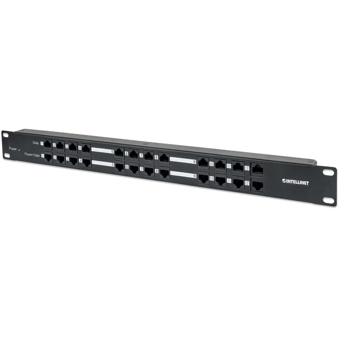 Intellinet 720342 24-port PoE Patch Panel A 24 Port Patch Panel with 12 port RJ45 Data In and 12 port RJ45 Data and Power Out Do you need a cost effective solution to upgrade your Network with Power over Ethernet? Then the 720342 from Intellinet Network Solutions is your ideal solution. Intellinet Network Solutions is renowned for their PoE products and this is one of our latest additions..
