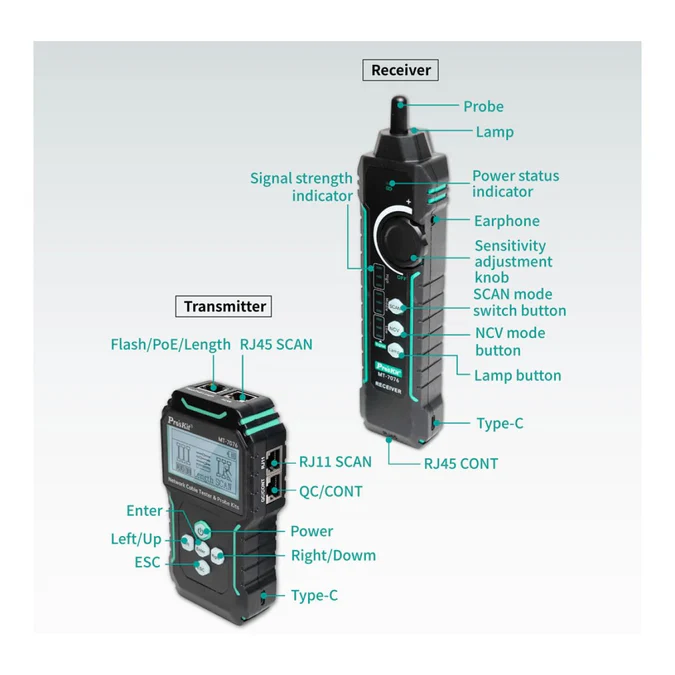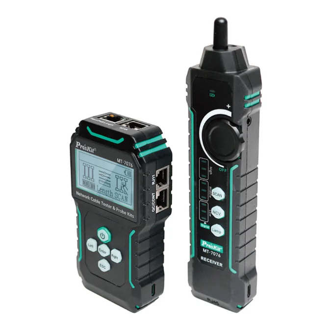 Pro'sKit MT-7076 LCD PoE Network Cable Tester and Probe Kit The Pro'sKit MT-7076 is a comprehensive PoE network cable tester and probe kit designed to test, trace, and diagnose a wide range of Ethernet and network cabling systems. Equipped with a clear LCD display and PoE detection capability, it is ideal for IT technicians, network installers, and maintenance professionals seeking accurate and efficient cable testing in structured cabling environments..