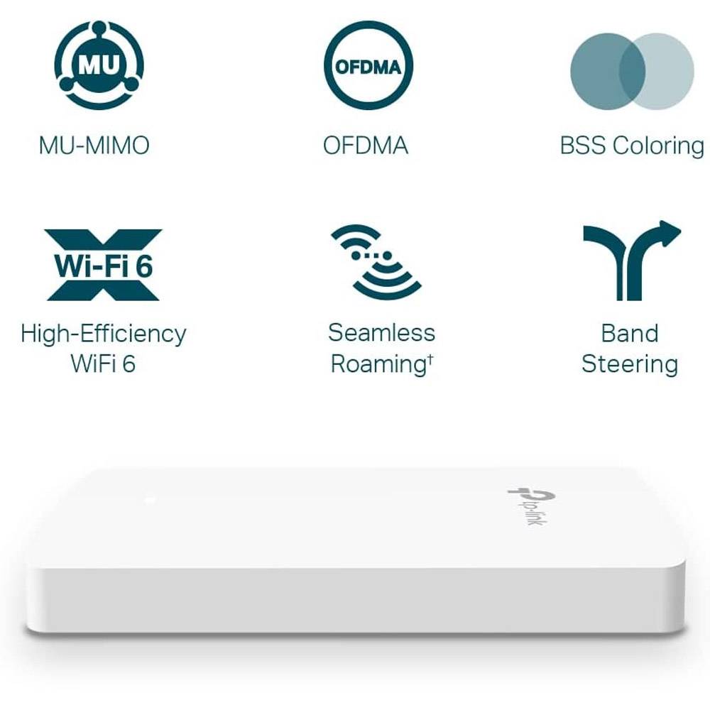 Superior WiFi 6 Speeds: Simultaneous 574 Mbps on 2.4 GHz and 1201 Mbps on 5 GHz totals 1775 Mbps Wi-Fi speeds.** High-Performance Connectivity: Guarantee higher network efficiency and lower latency. Four Gigabit Ports: 4 Gigabit Ethernet ports (1× uplink + 3× downlink), with one downlink port supporting PoE pass-through to provide power for wired device.‡ Centralized Management: Integrates into Omada SDN for cloud access and remote management. Secure Guest Network: Along with multiple authentication options (SMS/Voucher, etc.) and abundant wireless security technologies.† Easy Installation and PoE Support: Easy-to-install design, compatible with 86 mm & EU & US standard junction box, and 802.3af/at PoE support. High-Performance Connectivity for Better User Experience The latest WiFi 6 features and advanced wireless techniques guarantee higher network efficiency and lower latency. Seamless Integrated into Omada SDN Platform The Omada Software Defined Networking (SDN) platform integrates network devices including access points, switches, and routers to provide 100% centralized cloud management and create a highly scalable network—all controlled from a single interface. More than Speed, Security Matters Safeguard your network and data against brute force attack and snooping with WPA3 enterprise-grade security protection, portal authentication, and segregated guest networks. Effortless Deployment with PoE Powered With 802.3af/802.3at Power over Ethernet supported, there’s no need to install additional wiring in the building. Plug the existing Ethernet cables in, and you’re ready to go. Full Gigabit Ports to Bridge Network Wired devices like VoIP phones can be powered with no need for extra electrical cables. The four data ports (1 uplink + 3 downlinks) transfer data at multiple Gigabits, allowing you to connect several devices to your gigabit network. One of the downlink ports offers PoE pass-through to eliminate the need for that extra power port. Technical Specifications: Maximum data transfer rate: 1774 Mbit/s Security algorithms: WPA, WPA2, WPA3 Ethernet LAN data rates: 10,100,1000 Mbit/s Power over Ethernet (PoE) Product colour: White