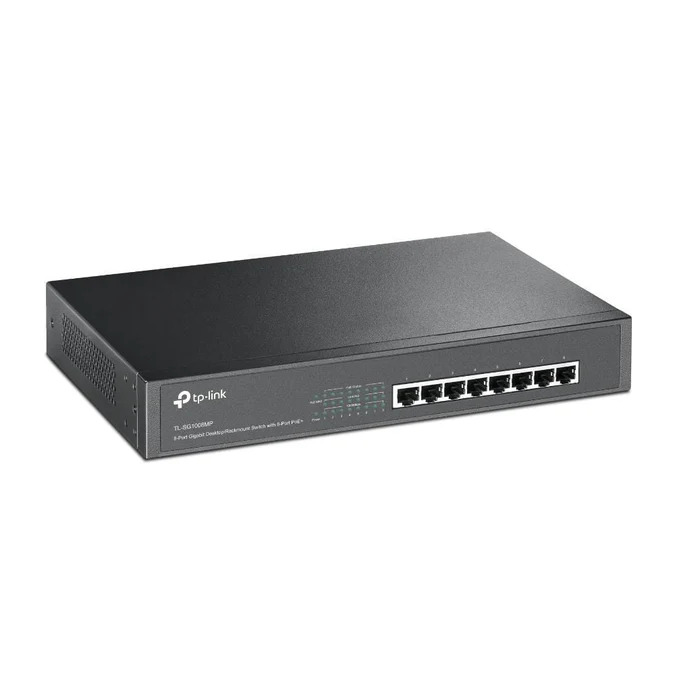 TP-LINK TL-SG1008MP. Switch type: Unmanaged. Basic switching RJ-45 Ethernet ports type: Gigabit Ethernet (10/100/1000), Basic switching RJ-45 Ethernet ports quantity: 8. MAC address table: 4000 entries, Switching capacity: 16 Gbit/s. Networking standards: IEEE 802.3af,IEEE 802.3at,IEEE 802.3x. Power over Ethernet (PoE). Rack mounting.