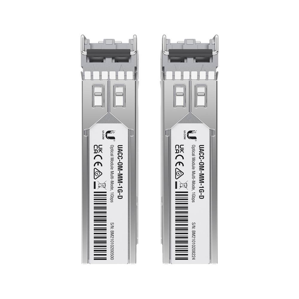 Ubiquiti Multi-mode 1G SFP LC 850nm 550m Transceiver Modules 2-pack UACC-OM-MM-1G-D-2 Features Max data rate: 1 Gbps Compatible with SFP interfaces Duplex LC UPC connector Supports multi-mode fiber connections up to 550 m.